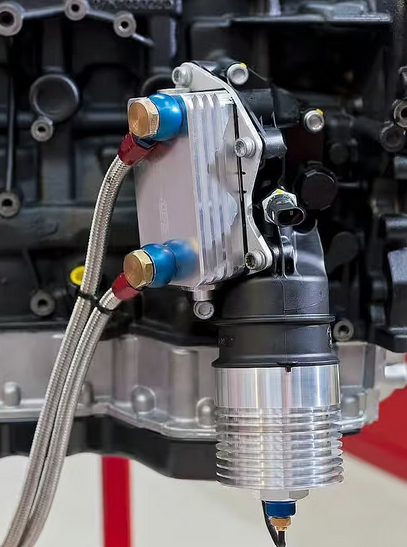 Der Ölkühler-Flansch ist passend für alle 2.5L TFSI EA855 und EA855 evo Motoren und eignet sich sowohl für seriennahe Fahrzeuge als auch für leistungsoptimierte Setups.