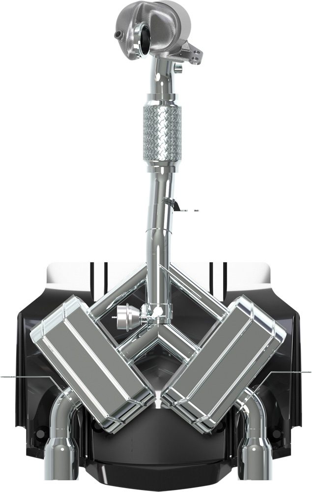 Herzstück der Anlage sind die hochwertigen Schalldämpfer mit elektronisch gesteuerter Abgasklappe. Je nach Fahrsituation wechselt das System zwischen dezentem Serienniveau und maximaler Klangentfaltung. Die im Lieferumfang enthaltene programmierbare CES-3 Klappensteuerung ermöglicht eine individuelle Anpassung des Klappenverhaltens – abgestimmt auf Drehzahl, Last oder persönliche Präferenzen.