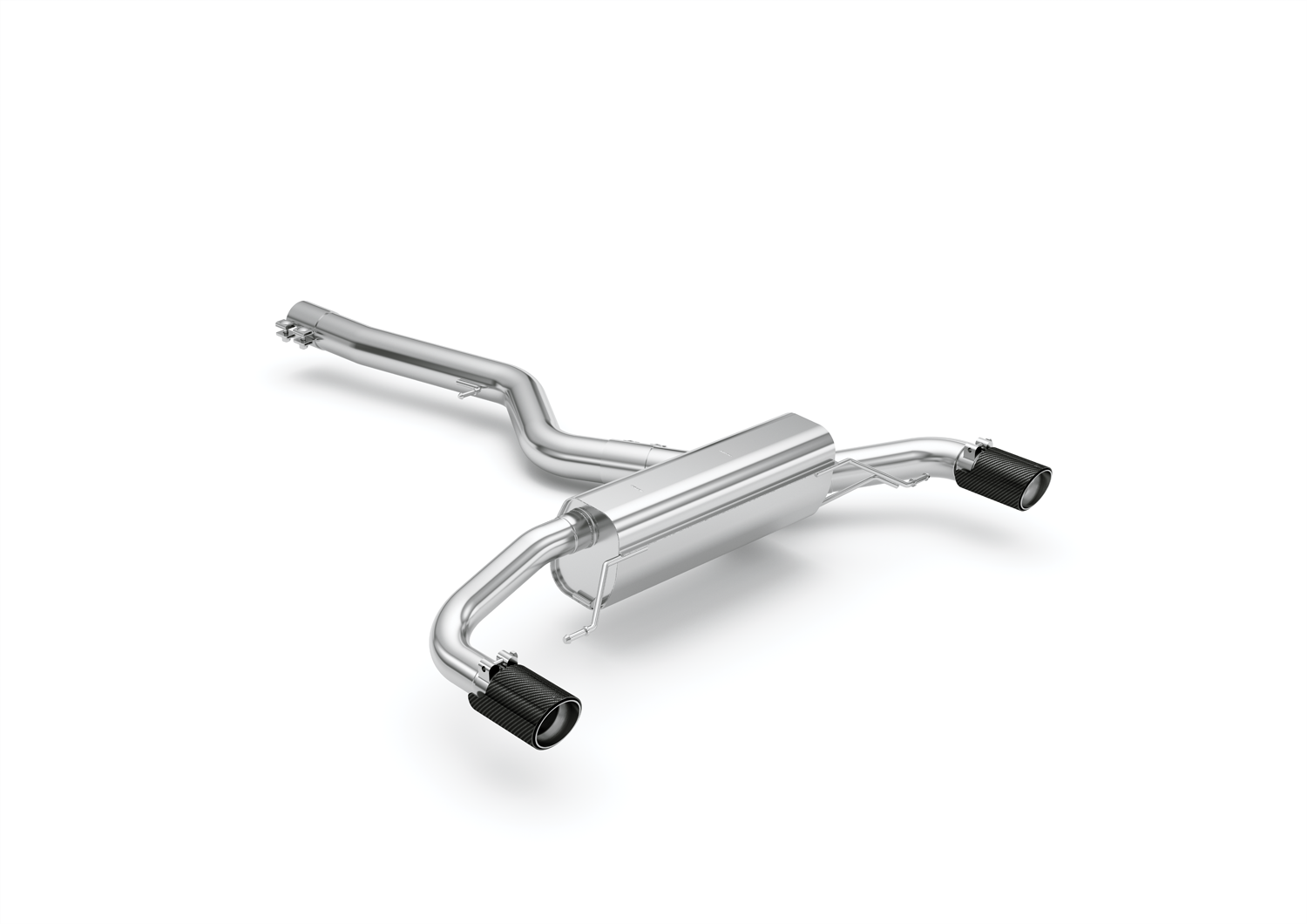 Der Slip-On Endschalldämpfer wird mit der vorhandenen Serienanlage verbunden und sorgt für einen verbesserten Abgasfluss sowie eine sportliche Klangentfaltung. Endrohre mit Schrägabschnitt verleihen dem Fahrzeugheck eine besonders sportliche Optik.