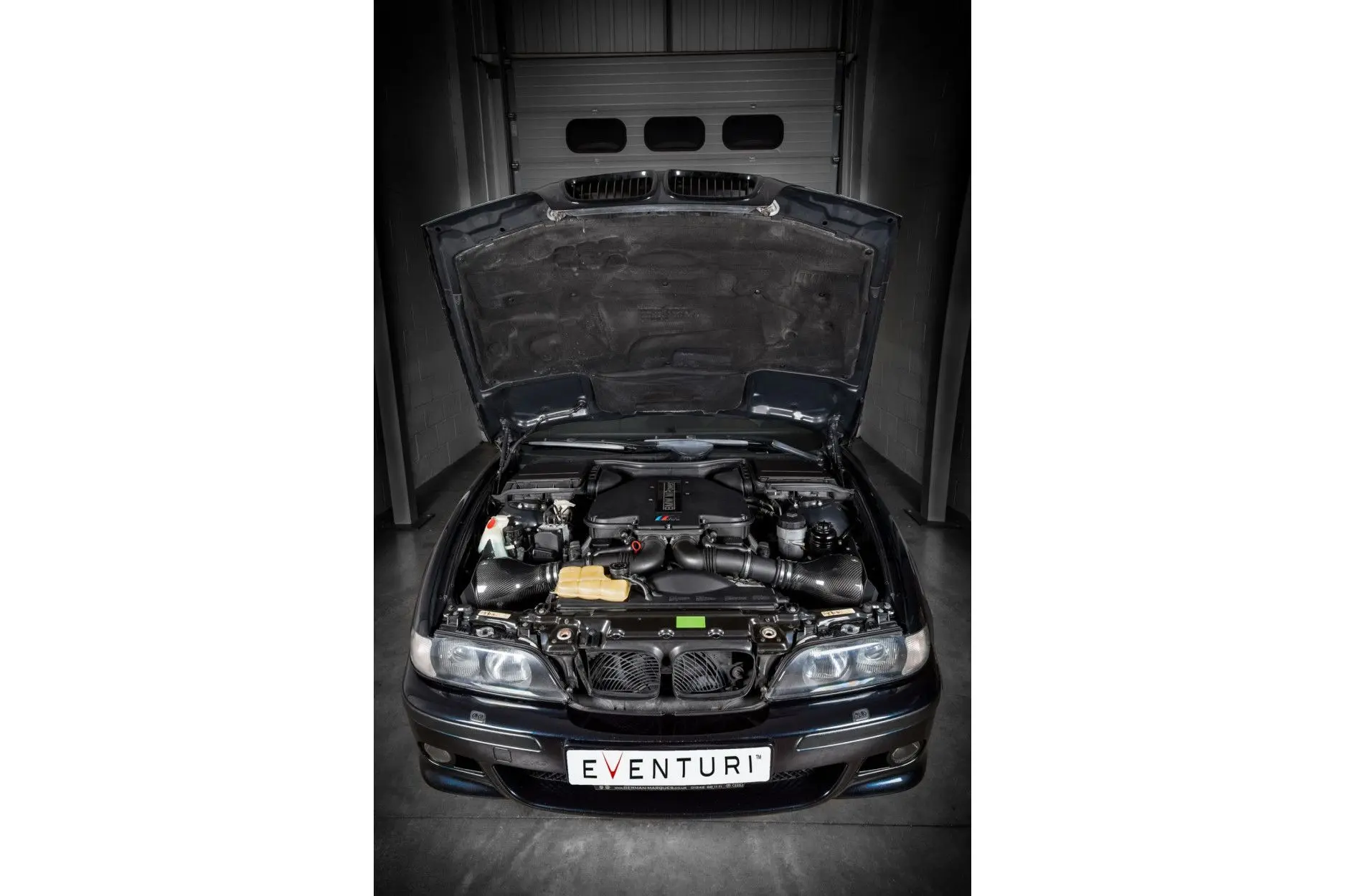 Die neuste Produktentwicklung von Eventuri in England nimmt den BMW E39 M5 ins Visier. Die Ansaugung für den BMW E39 ist als Komplettlösung gedacht und ersetzt das OWM Airbox System. Das Ziel, ein Ansaugsystem für den M5 zu bauen, das mit der OEM ECU map und MAF Sensoren funktioniert, wird durch zwei Komponenten erreicht. Das eckige OEM Airbox Gehäuse wird durch das patentierte Eventuri Gehäuse ersetzt, das wie in allen Ansaugungen von Eventuri einen laminaren, gleichmäßigen Luftstrom ohne Widerstände garantiert. Außerdem wird durch die beiden Scoops, die in diesem Ansaugsystem in den Nebelscheinwerfern integriert werden, für einen echten Kaltluftstrom gesorgt.