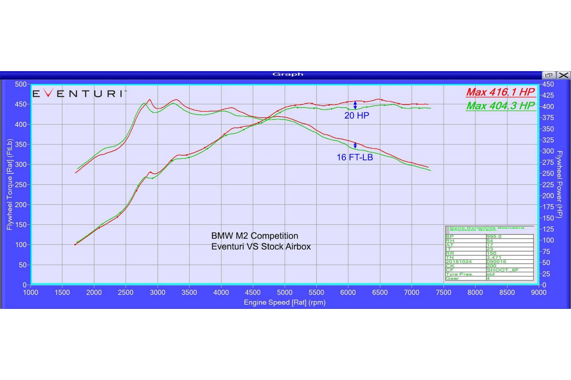 Das Ansaugsystem für den F87 M2 Competition ist so konzipiert, dass die Turbos effizienter arbeiten können. Durch den Austausch des serienmäßigen Airboxsystems mit unseren patentierten Venturifiltergehäusen und glatt gekrümmten Rohren ist der Luftstrom zu den Turbos laminarer, so dass sie mit weniger Widerstand rollieren können. Da der M2 Competition keine Luftöffnungen hinter den Gittern hat, haben wir auch abgedichtete Kanäle hinzugefügt, um sicherzustellen, dass die Eintrittstemperaturen so niedrig wie möglich bleiben. Die Kombination aus unseren Venturigehäusen, organisch geformten Rohren und abgedichteten Kanälen führt zu einer optimierten Einlassöffnung, die einen Maßstab für dieses Auto setzt.Der Eventuri-UnterschiedDas M2 Competition Eventuri System verwendet unsere patentierten Kohlefasergehäuse mit unseren maßgeschneiderten Filtern der Gen 2, die einen aerodynamisch effizienten Luftstromweg vom Filter zu den Turbos ermöglichen. Nicht nur ein weiterer Konusfilter mit Hitzeschild, sondern ein einzigartiges Design, das den Venturi-Effekt hervorruft und laminare Strömungsbedingungen beibehält, um den Luftwiderstand des Turbos zu reduzieren.