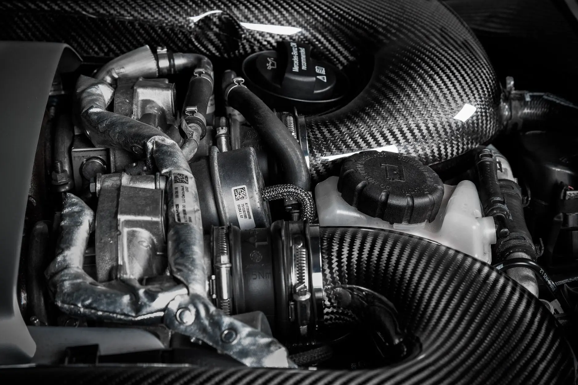 gesamte begrenzte Platz im GLC63S-Motorraum genutzt wurde, was zu einer