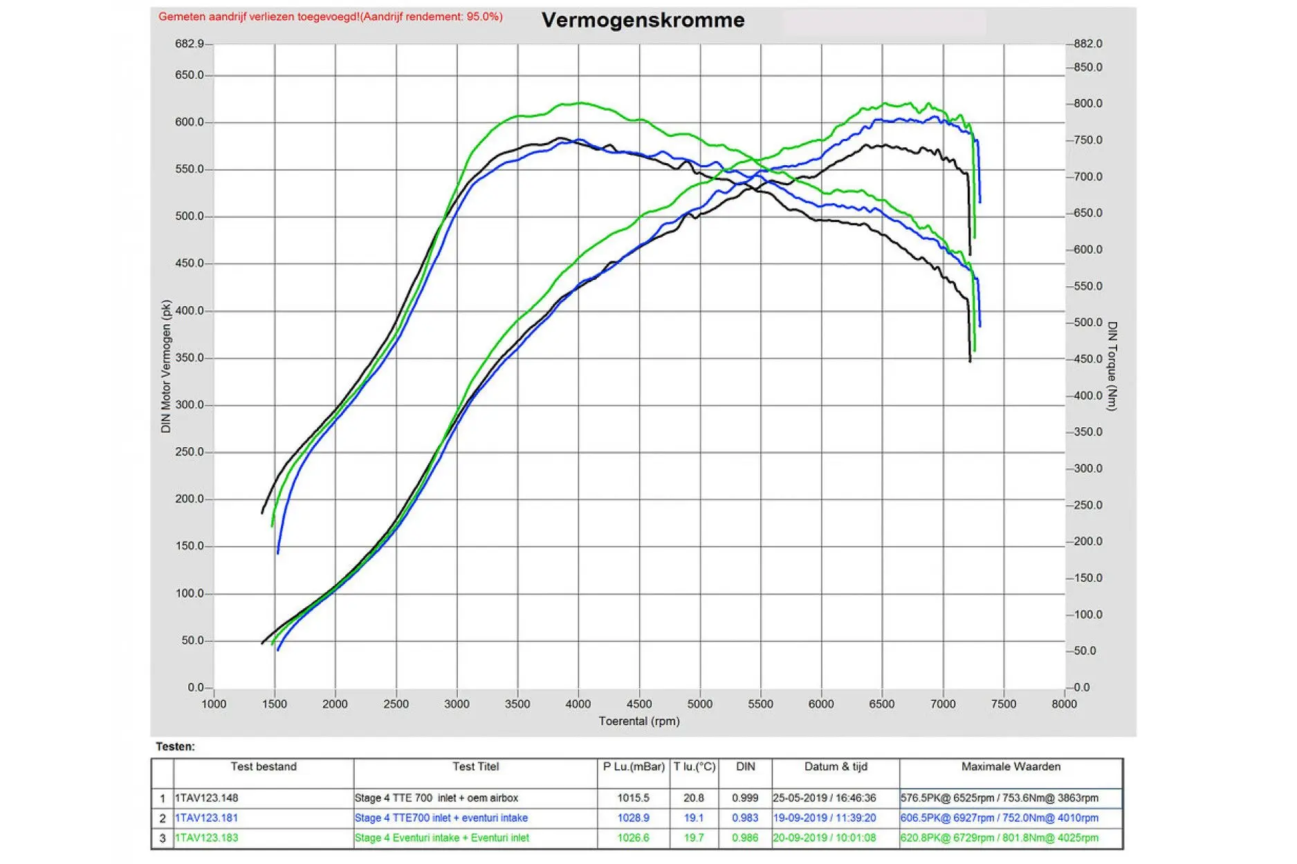 Zusammenfassung der Dyno-Ergebnisse: