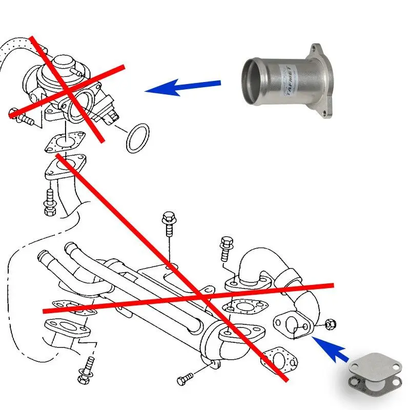 Meistens bis zum 2002-2004 gibt es keine ECU-Warnleuchte angezeigt. Bei späteren Modellen mit pneumatischen und elektronischen AGR-Ventilen kann nach der Einbau diesen Satz die ECU-Warnleuchte erscheint. Wir empfehlen eine erneute Abbildung der ECU, damit die AGR-Funktion vollständig entfernt werden kann. Das kann man vom Tuner durchgeführt werden.