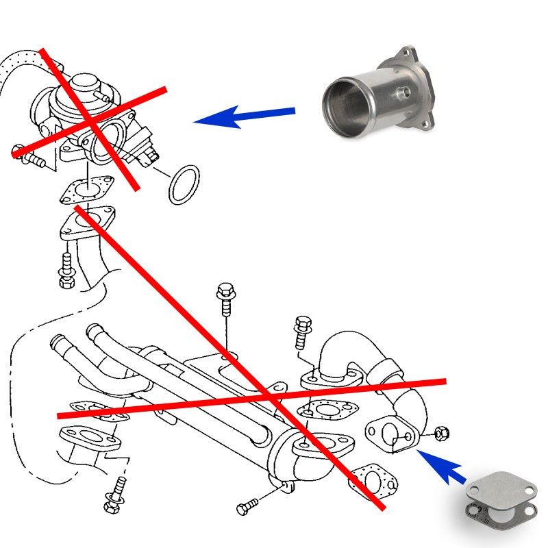 Meistens bis zum 2002-2004 gibt es keine ECU-Warnleuchte angezeigt. Bei späteren Modellen mit pneumatischen und elektronischen AGR-Ventilen kann nach der Einbau diesen Satz die ECU-Warnleuchte erscheint. Wir empfehlen eine erneute Abbildung der ECU, damit die AGR-Funktion vollständig entfernt werden kann. Das kann man vom Tuner durchgeführt werden.