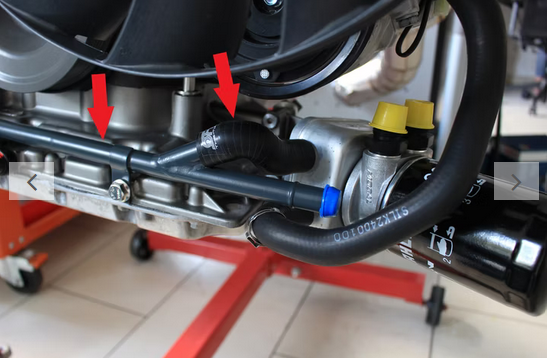 Das Kühlmittelrohr mit Silikonschlauch kann nur in Verbindung mit dem Ölkühler / Wärmetauscher verwendet werden.