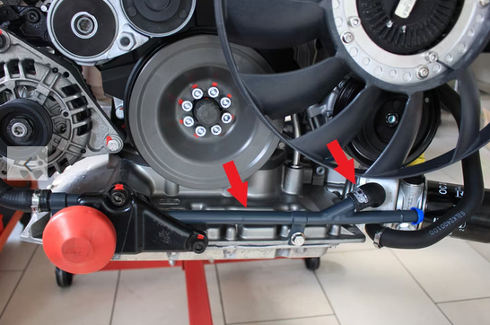 Kühlmittelrohr an der Ölwanne – inklusive Silikonschlauch