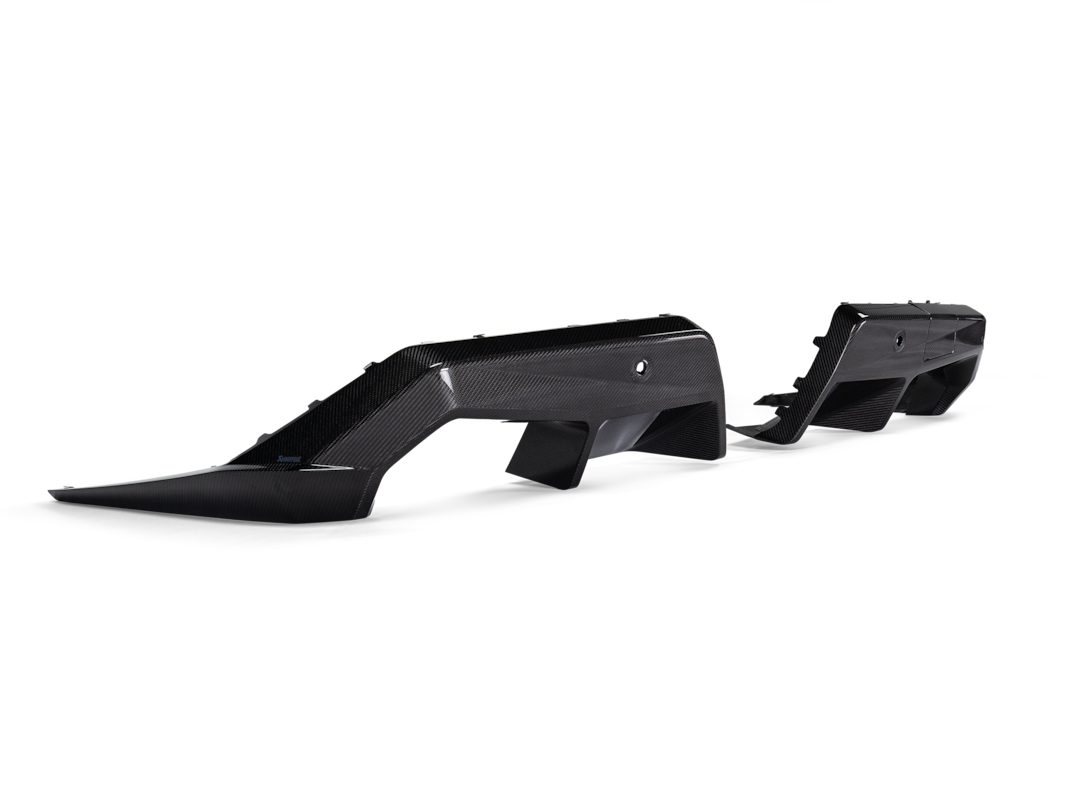 Der Akrapovic Rear Carbon Fiber Diffusor in schwarzer Hochglanz-Ausführung ist die perfekte optische Ergänzung zur Akrapovic Abgasanlage des BMW M5. Der Diffusor unterstreicht die sportliche Heckansicht des Fahrzeugs und verleiht Limousine wie Touring eine noch dynamischere, motorsportinspirierte Optik.