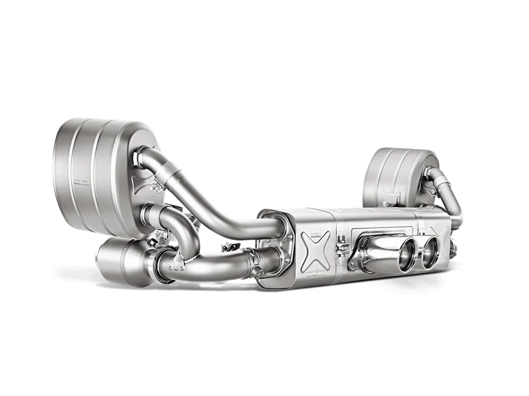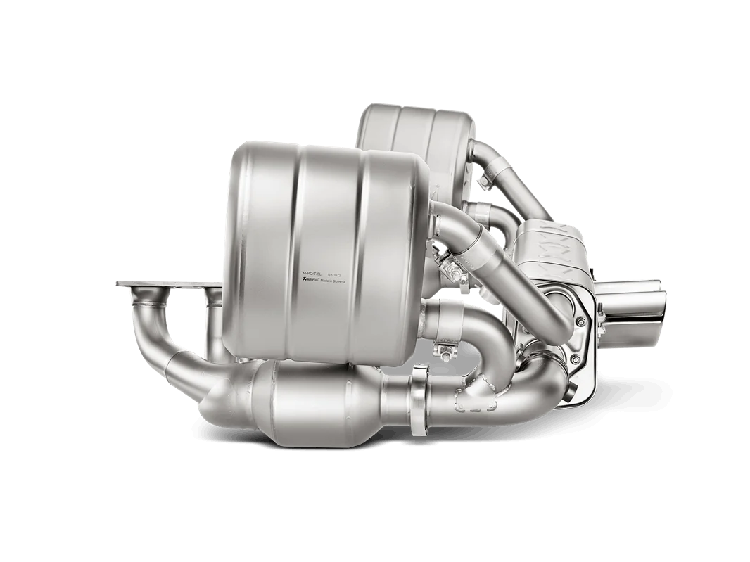 , das bei höheren Drehzahlen deutlich mehr Leistung liefert. Dank der ausgeprägten Liebe zum Detail – einige Teile wurden in der eigenen Akrapovič Titan-Gießerei hergestellt – ist es ein Vergnügen, die Handwerkskunst und die Beschichtung auf dem System zu betrachten. Mit einem neuentwickelten Auspuffkrümmer, der 100 cpsi Sport-Katalysatoren und seitliche Schalldämpfer enthält, die allesamt entwickelt wurden, um die Leistung und das Drehmoment zu steigern, nutzt die Evolution Line die integrierten Katalysatoren und die Funktionalität neuer Auspuffventile, um die Sinne auf jede erdenkliche Weise anzusprechen. Mit den Ventilen in offener Position hört sich die Evolution Line an wie das auf höchstem Niveau arbeitende Evolution Race System. Zugleich beinhaltet es die Option für einen niedrigeren Geräuschlevel, der perfekt ist, um ihn in einer alltäglicheren Umgebung zu nutzen. Die Reduktion des Gewichts dank der Leichtbauweise im Bereich hinter dem Motor und der Hinterachse verbessert sowohl das Handling als auch die Leistung. Die Evolution Line bietet zudem im offenen Modus einen sportlicheren und härteren Sound. Je höher die Drehzahl des Motors steigt, desto besser wird der Sound. Zugleich wird die Performance erhöht. All das sorgt für eine noch stärkeres Sinneserlebnis. Fügt man der Evolution Line noch den optionalen, handgefertigten Heckdiffusor aus Carbon hinzu, dann demonstriert sie, wie Ernst es der GT3 jederzeit meint – selbst wenn er still steht.Bei Installation optionaler Akrapovic-Nachrüst-Downpipes mit Sportkatalysator, die nur für die Verwendung auf geschlossenen Strecken bestimmt sind, ist ECU-Remapping vorgeschrieben. Bei Installation einer Akrapovič-Nachrüst-Aufpuffanlage, die für den Einsatz auf geschlossenen Strecken entwickelt wurde, empfehlen wir ECU.Remapping, um dem etwaigen Anspringen der Motorwarnleuchte vorzubeugen.