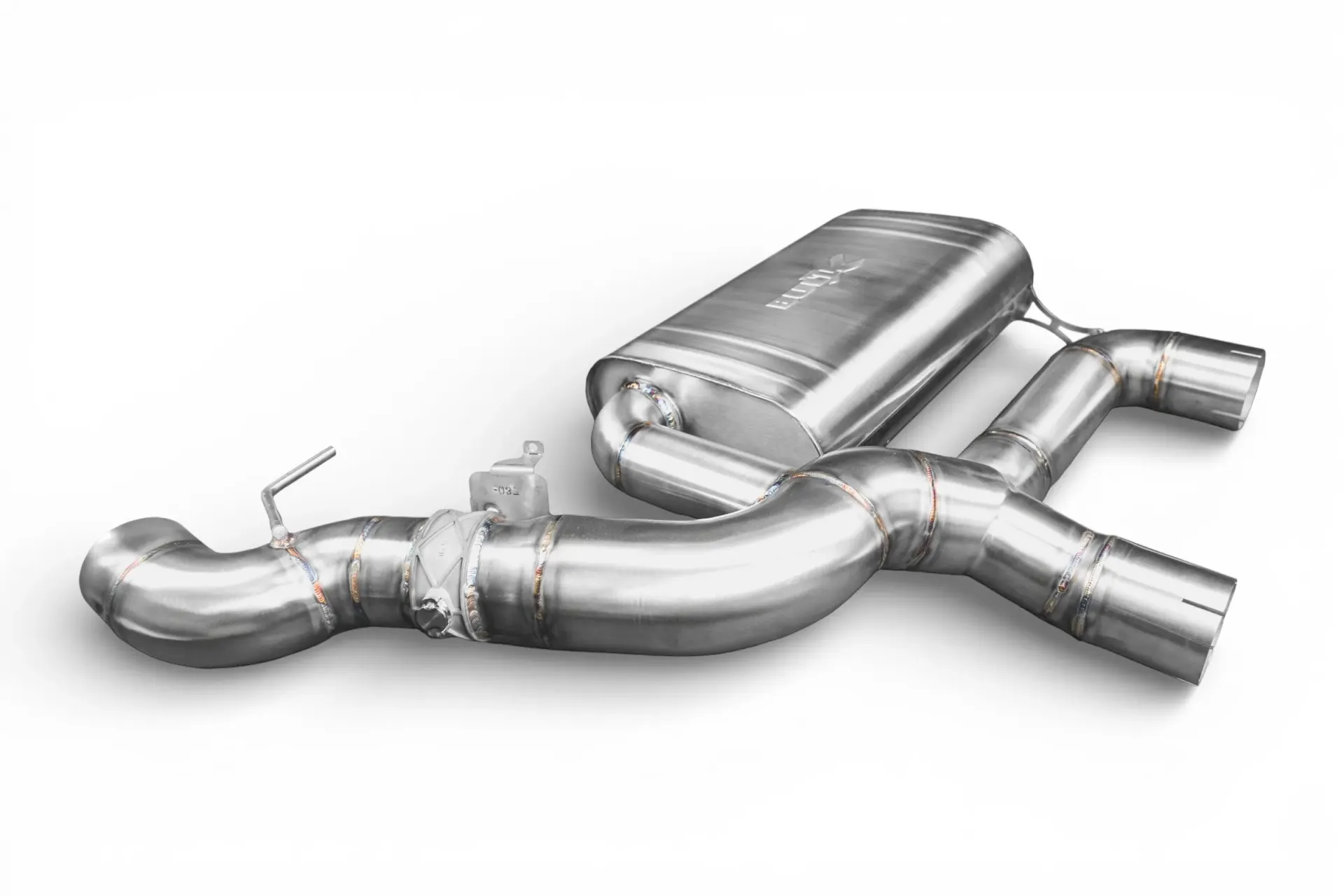 Die Abgasanlage wird im WIG-Schweißverfahren handgefertigt und besteht aus hochwertigem Edelstahl. Der Absorptionsschalldämpfer wird im Haus gefertigt und ist exakt auf den B58 abgestimmt.
