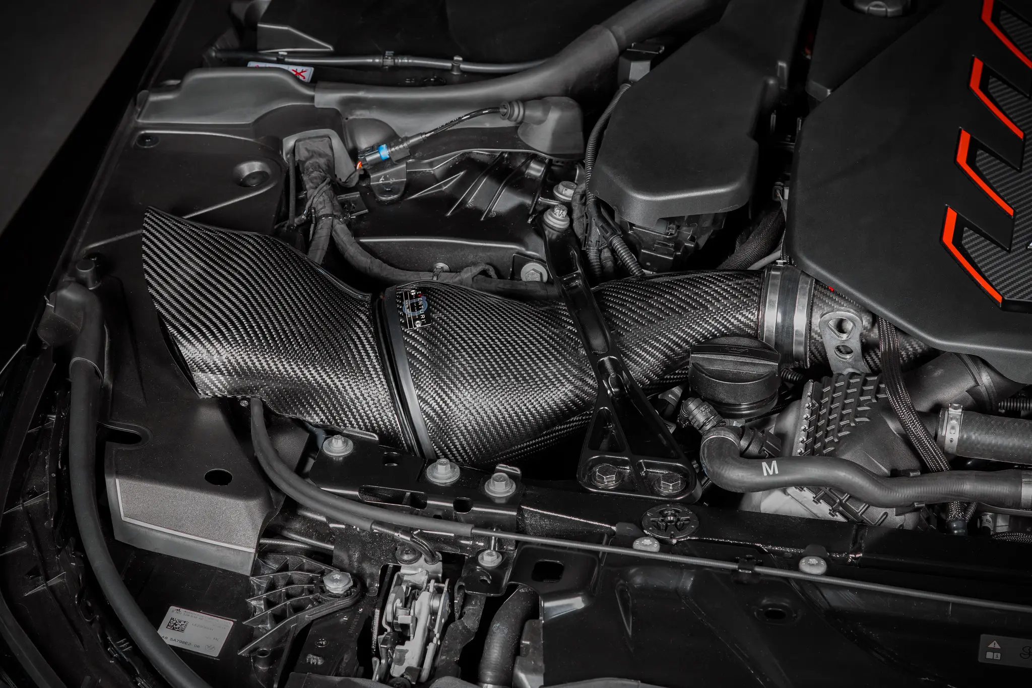 Das Eventuri Ansaugsystem wurde speziell für den BMW M5 G90/G99 entwickelt. Es sorgt für einen deutlich verbesserten Luftdurchsatz gegenüber der Serienansaugung. Dank der patentierten Venturi-Gehäuseform entsteht ein gleichmäßiger, laminare Luftstrom, der das Ansprechverhalten verbessert, die Leistung steigert und einen sportlich-tiefen Ansaugsound erzeugt.