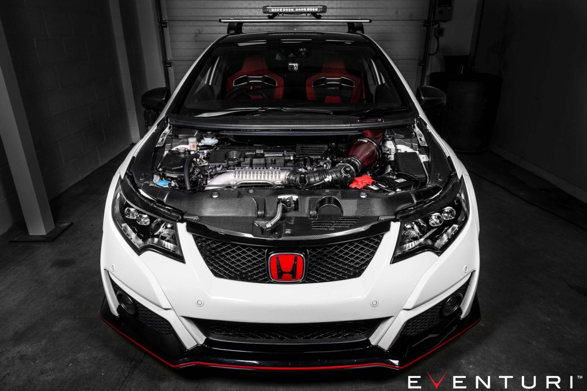 Das Eventuri Carbon Ansaugsystem für Honda Civic FK2 Type R ist in den Varianten Carbon und Kevlar (gelb, rot, blau) verfügbar. Das Ansaugsystem wurde entwickelt, um das Fahrerlebnis zu verbessern. Eventuri bedient sich bei der Entwicklung bei dem so genannten Venturi Effekt, welcher durch einen umgedrehten kegelförmigen Filter umschlossen von einem Carbon/Kevlar-Gehäuse entsteht. So kommt es zu einem gleichmäßig laminaren Luftstrom, wodurch nicht nur die Motorleistung, sondern auch das Ansprechverhalten und der Klang verbessert werden. Das Intake bewirkt einen Leistungszuwachs von etwa +18-20 PS.