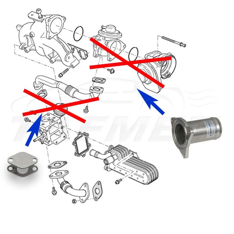 Meistens bis zum 2002-2004 gibt es keine ECU-Warnleuchte angezeigt. Bei späteren Modellen mit pneumatischen und elektronischen AGR-Ventilen kann nach der Einbau diesen Satz die ECU-Warnleuchte erscheint. Wir empfehlen eine erneute Abbildung der ECU, damit die AGR-Funktion vollständig entfernt werden kann. Das kann man vom Tuner durchgeführt werden.