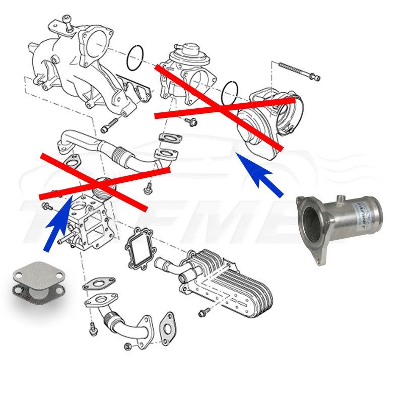 Meistens bis zum 2002-2004 gibt es keine ECU-Warnleuchte angezeigt. Bei späteren Modellen mit pneumatischen und elektronischen AGR-Ventilen kann nach der Einbau diesen Satz die ECU-Warnleuchte erscheint. Wir empfehlen eine erneute Abbildung der ECU, damit die AGR-Funktion vollständig entfernt werden kann. Das kann man vom Tuner durchgeführt werden.