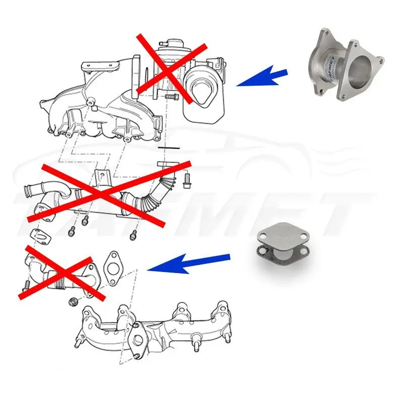 Meistens bis zum 2002-2004 gibt es keine ECU-Warnleuchte angezeigt. Bei späteren Modellen mit pneumatischen und elektronischen AGR-Ventilen kann nach der Einbau diesen Satz die ECU-Warnleuchte erscheint. Wir empfehlen eine erneute Abbildung der ECU, damit die AGR-Funktion vollständig entfernt werden kann. Das kann man vom Tuner durchgeführt werden.
